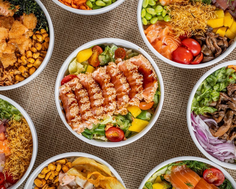 Poke bowls personalizáveis.